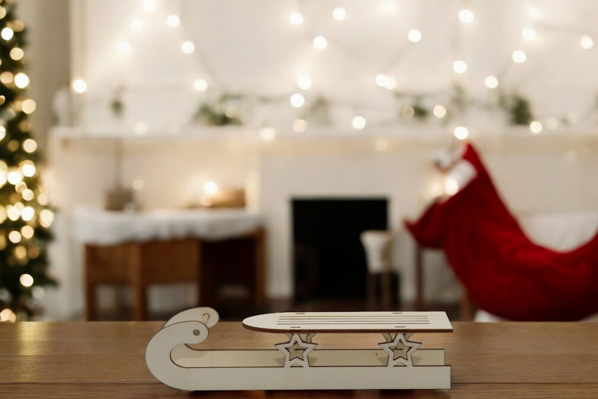 Dieser handgefertigte Deko-Schlitten bringt winterliche Stimmung in jedes Zuhause und ist ideal zum Dekorieren oder als kleines Geschenk – perfekt für die Weihnachtszeit!