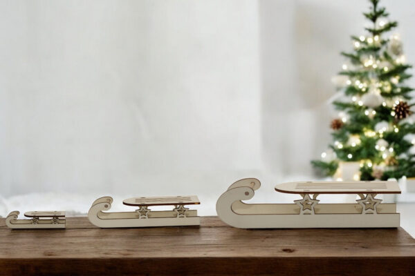Stilvoller Schlitten aus robustem Pappelspeerholz (ca. 4 mm stark) in drei Größen: